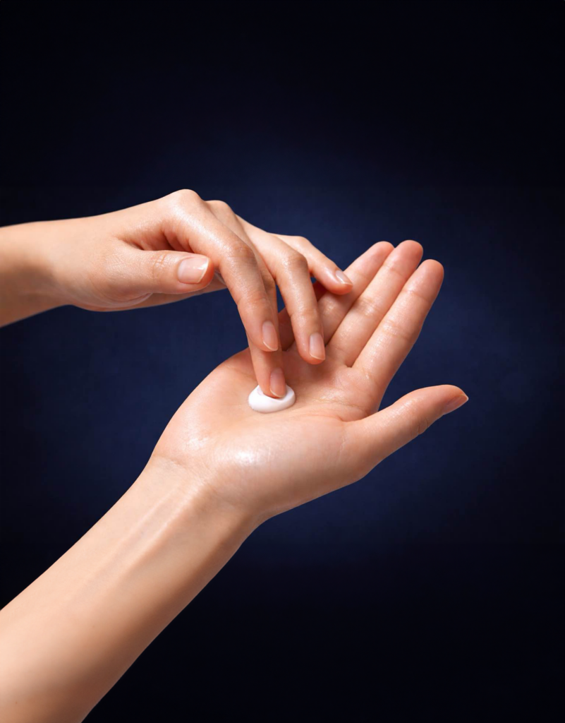 Matin et soir, réchauffez délicatement la crème entre les mains.