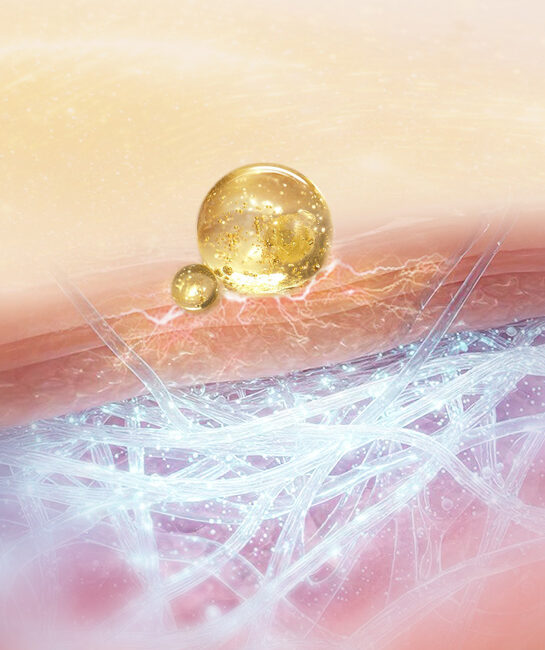 → D’une part, le soutien de l’apparence des éléments clés associés à la structure et à la densité cutanées, afin d’apporter une base interne à la fermeté et à la définition des contours ;